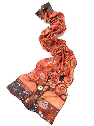 Prettystern sciarpa in Seta donna colorata Gustav Klimt Arte foulard di seta pura Regalo Idee Albero Della Vita oro-arancio P875
