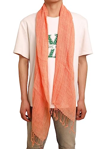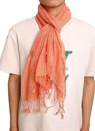 Prettystern Uomo 200cm Lunga Sciarpa Lino Pashmina Leggera Estiva Primavera Foulard con Frange Tinta Unita T26 orange T38