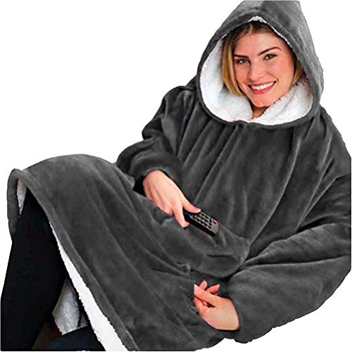Prettyui - Pullover Felpa con Cappuccio Robe Coperta Felpa con Cappuccio Coperta Felpa con Cappuccio Flanella, Super Morbida, Calda e Confortevole, Taglia Unica (Grigio)