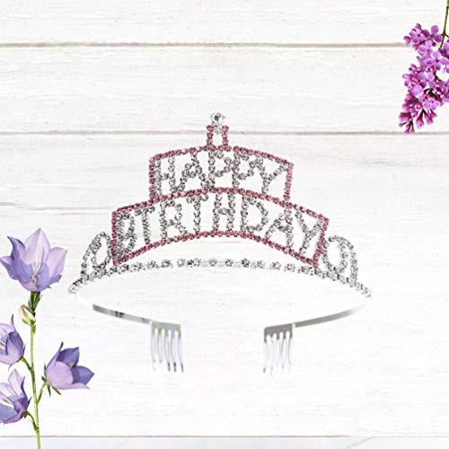PRETYZOOM Buon Compleanno Corona Ragazza Diadema Fascia Strass Compleanno Corona Corona Principessa per Spettacolo Festa di Compleanno