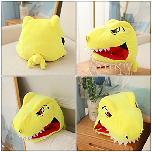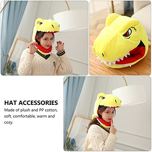 PRETYZOOM Cappello da dinosauro, divertente con testa di peluche, copricapo per cosplay, cappello giurassico, per bambini, adulti (giallo)
