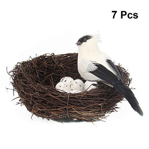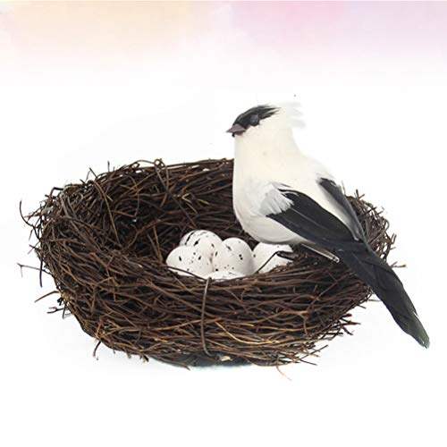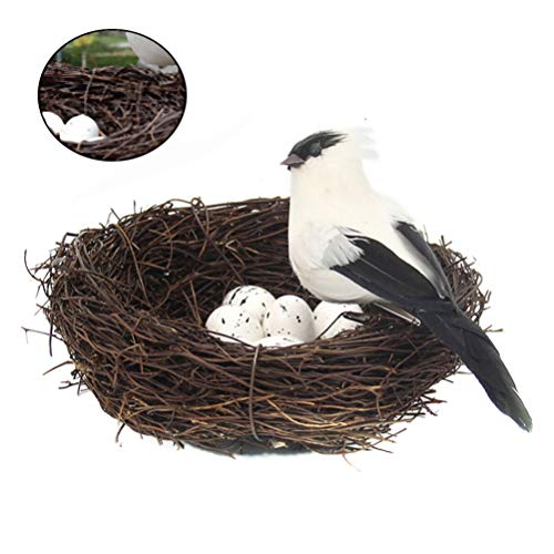 PRETYZOOM - Nido Artificiale per Uccelli in Rattan, con 5 Uova e 1 Uccello, per Cortile, casa, Festa, Pasqua, Bianco