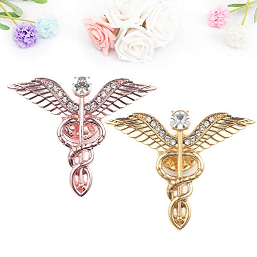 PRETYZOOM Spilla Caduceo Emblema Pin Medico Gioielli in Lega Pettorale per Mamma Festa della Mamma Infermiera Dottore Laurea Regalo di Compleanno 2 Pezzi (Oro + Oro Rosa)
