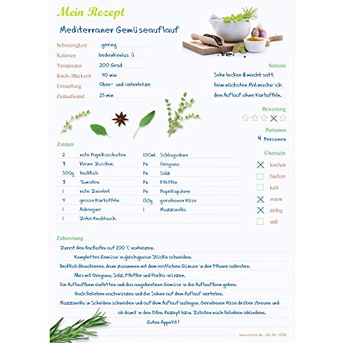 PRICARO, raccoglitore per ricette con blocchetti per ricette, design “spezie”, formato A4 (versione tedesca)