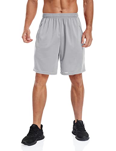 PRIESSEI Pantaloncini Sportivi da Ginnastica Leggeri da Uomo con Tasche con Zip, Grigio, M