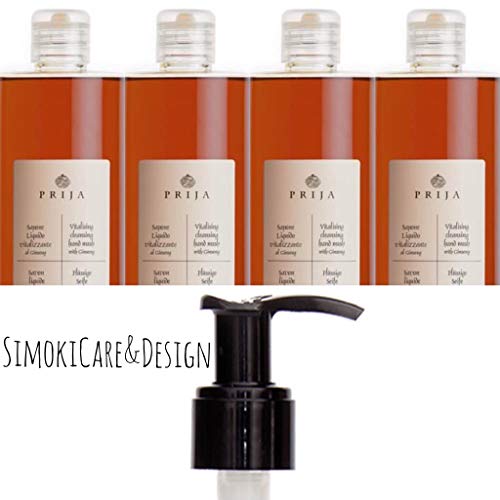 Prija - Sapone liquido Ginseng Wellness Spa, 4 flaconi da 380 ml, 2 dispenser per sapone
