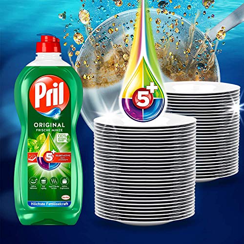 Pril 5 Plus Original Fresh Minze, detersivo per piatti a mano (14 x 675 ml) con potere sgrassante automatico