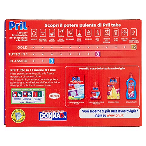 Contenuto confezione - Pril Tutto in 1 Limone & Lime, tab lavastoviglie sapone piatti con 8 azioni, attiva già a 40°, contro ogni sporco, confezione da 26 tabs