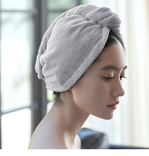 Prima asciugamano in microfibra per turbante per capelli, super assorbente, 4 colori, Poliestere, Ash Grey, 1 confezione