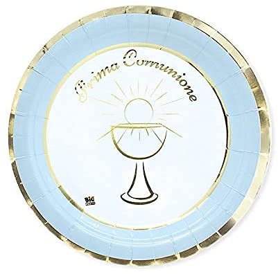 Kit n.42 Prima Comunione chic celeste Coordinato tavola Festa eucarestia Sacramento Bambini Ostia Calice per Buffet a casa