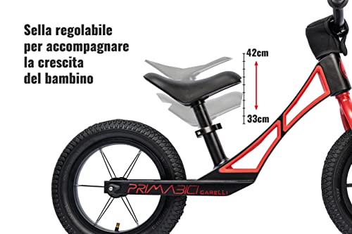 Primabici Garelli Neroassoluto 12 inch Balance Bike, bicicletta senza pedali bambini 18 mesi 5 anni