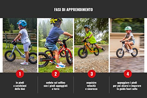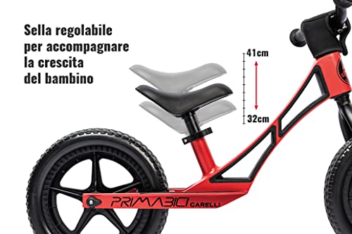 Primabici Garelli Rossocorsa 12 inch Balance Bike, bicicletta senza pedali bambini 18 mesi 5 anni