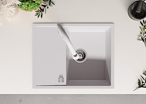 PRIMAGRAN Lavello Composito 62 x 50 cm, Lavandino Cucina 1 vasca + Rubinetto + Sifone Automatico, Lavabo Cucina da Incasso Ibiza 620 Compact, Bianca