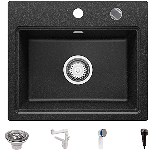 Primagran - Lavello in granito, 51 x 43,5 cm, con sifone e sifone automatico, da cucina a partire da 50 cm, in 5 colori, con sifone e varianti antibatteriche, lavello da incasso di Primagran