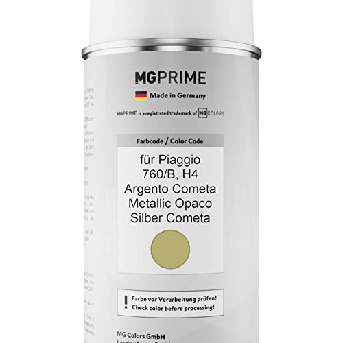MG PRIME Vernice per auto Bomboletta spray per Piaggio 760/B / H4 Argento Cometa Metallic Opaco/Silber Cometa Bomboletta a spruzzo di vernice di base da 400ml