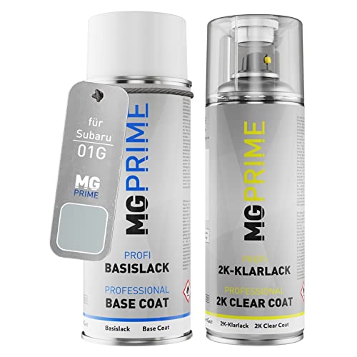 MG PRIME Vernice per auto Kit bombolette spray 2K per Subaru 01G Premium Silver Metallic/Delphinsilber Metallic Bomboletta a spruzzo vernice di base 2 componenti vernice trasparente