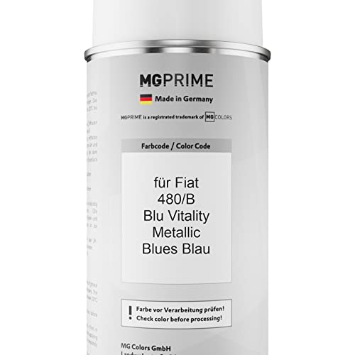 MG PRIME Vernice per auto Kit di bombolette a spruzzo per Fiat 480/B Blu Vitality Metallic/Blues Blau Bomboletta spray da 400ml di vernice di base vernice trasparente