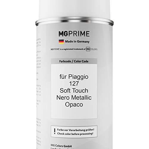 MG PRIME Vernice per auto Kit di bombolette a spruzzo per Piaggio 127 Soft Touch Nero Metallic Opaco Bomboletta spray da 400ml di vernice di base vernice trasparente