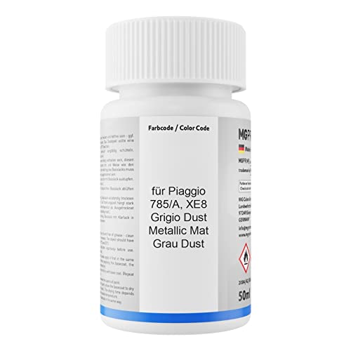 MG PRIME Vernice per auto Kit stilo di ritocco per Piaggio 785/A / XE8 Grigio Dust Metallic Mat/Grau Dust Vernice di base vernice trasparente ognuno 50ml