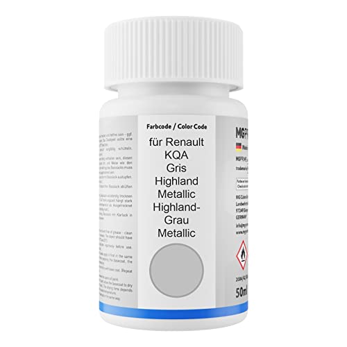 MG PRIME Vernice per auto Kit stilo di ritocco per Renault KQA Gris Highland Metallic/Highland-Grau Metallic Vernice di base vernice trasparente ognuno 50ml