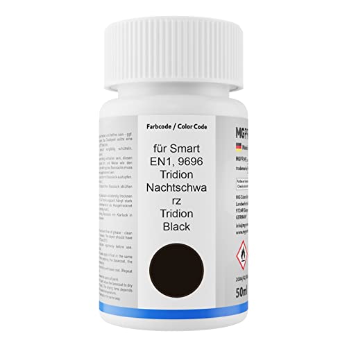MG PRIME Vernice per auto Kit stilo di ritocco per Smart EN1 / 9696 Tridion Nachtschwarz/Tridon Black Vernice di base vernice trasparente ognuno 50ml