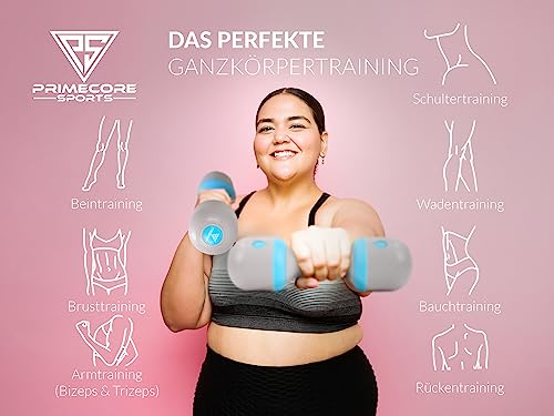PRIMECORE SPORTS Set di 2 manubri regolabili, 1-5 kg, con 36 pesi, set di manubri compatti con esercizi