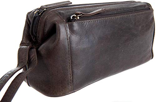 Primehide Incorniciato pelle Morbida da Uomo Astuccio da Bagno Toeletta Borsa - 951 - Marrone Scuro