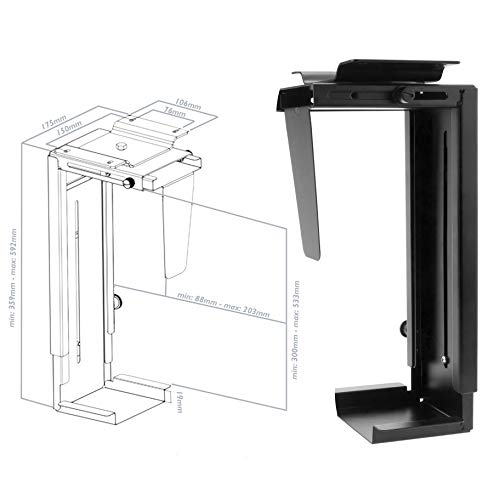 PRIMEMATIK AC65-0002-VCES - Supporto per Scatola per Computer da Tavolo o Fissaggio a Parete Regolabile (88-203 mm), Colore: Nero