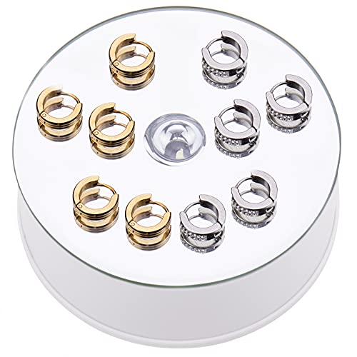 Base rotonda realizzata in plastica bianca e superficie specchiata, che permette di vedere l'oggetto posto sulla base dalla sua parte inferiore.