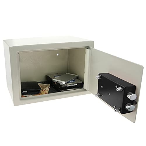PrimeMatik - Cassaforte di Sicurezza in Acciaio Armadi di Sicurezza con Chiavi 35 x 25 x 25 cm Beige