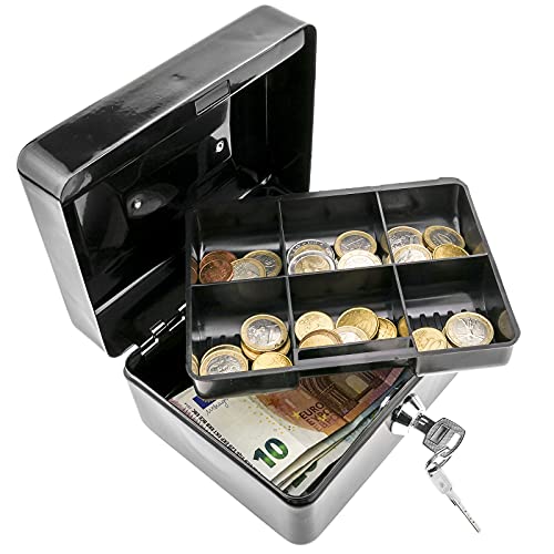 PrimeMatik - Cassetta portavalori Portatile per Banconote e Monete 150 x 117 x 80 mm