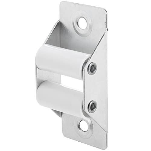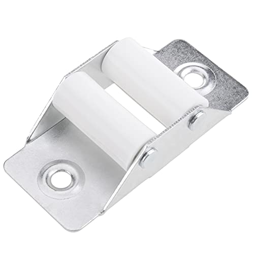 Carrucola metallica per fascette con due rulli in nylon bianco.