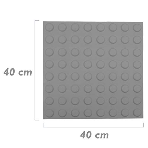 Superficie della piastrella:40 x 40 cm. Altezza: 3 mm (minimo) e 7 mm (massimo). Diametro dei cerchi: 28 mm. Colore: grigio