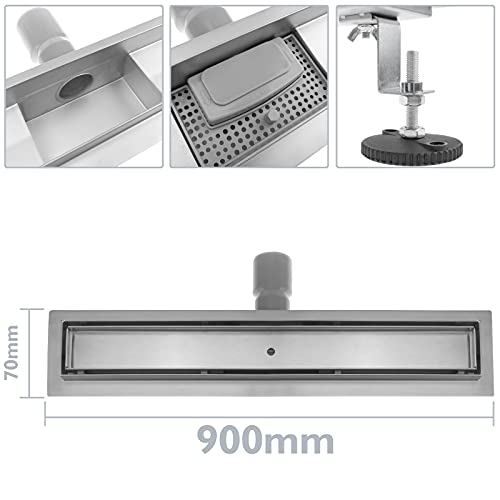PrimeMatik - Scarico Doccia 90x7 cm. Canaletta di drenaggio a Pavimento in Acciaio Inossidabile per Piastrelle