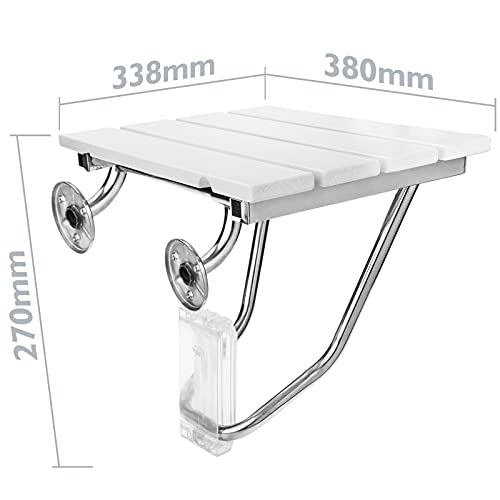 PrimeMatik - Sedile per Doccia Pieghevole. Sedia Pieghevole per Persone anziane in plastica WPC e Acciaio Inox 380 x 338 mm Bianco