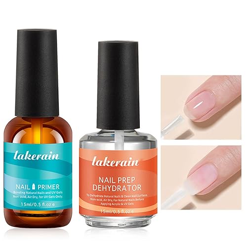 Primer per smalto gel, disidratatore e primer per unghie, set da 2 pezzi da 15 ml, senza acidi, naturale, disidratare e legare, primer per unghie ad asciugatura rapida, primer di qualità superiore per