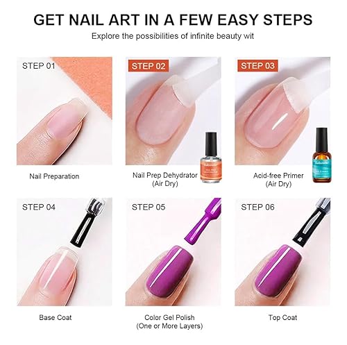 Set di primer e disidratatore per unghie: riceverai 1 disidratatore per la preparazione delle unghie da 15 ml + 1 primer gel senza acidi da 15 ml + 1 confezione regalo. È il passo più importante per preparare la lamina ungueale acrilica o gel per creare una base in qualsiasi applicazione professionale per unghie artificiali. Applicare questo set di gel coat per avere la migliore base per unghie in polvere acrilica o smalto gel per unghie