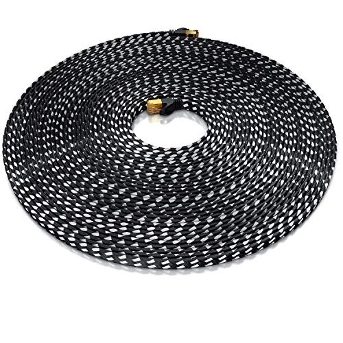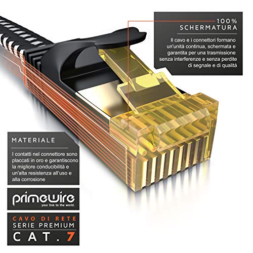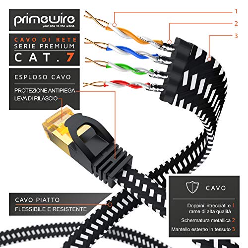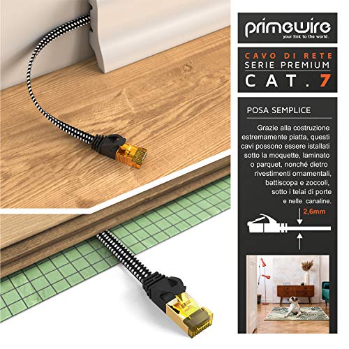 Primewire 20m - Cat 7 Cavo di Rete Piatto in Tessuto Intrecciato di Alta qualitá - Ethernet Gigabit LAN RJ45-10 Gbits - Cavo Patch - UFTP - Universale Compatibile con Cat.5 Cat.5e Cat.6-20 Metri