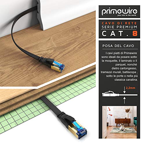 Primewire 7,5m - Nuovo Cavo di Rete Piatto Cat 8 - Ethernet Gigabit LAN RJ45 - 40 Gbits - Piatto Sottile Slim - UFTP PIMF - Compatibile con Cat.5 Cat.6 - Nero da 7,5 m