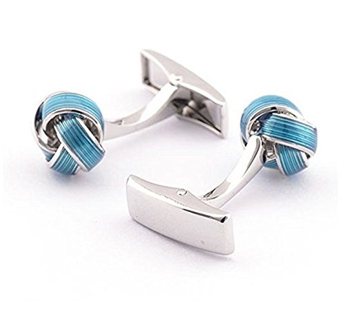 Primi elegante da uomo camicia gemelli blu e argento intrecciato sfera gemelli