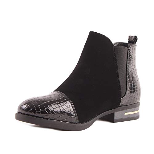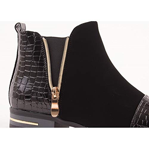 Primtex Stivaletti da donna, in simil-pelle e daino, con zip dorata, colore: Nero