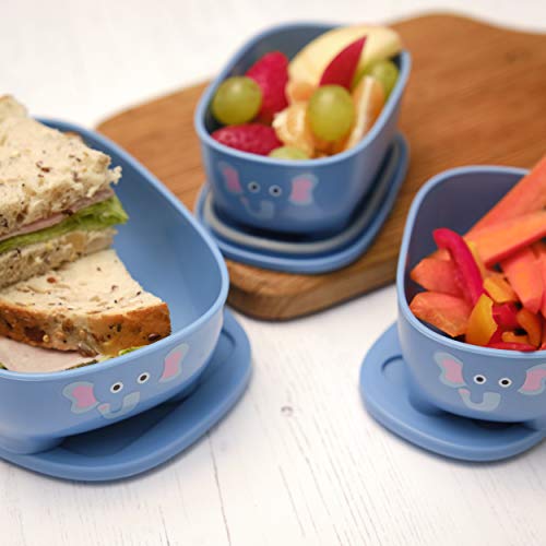 Prince Lionheart Bentomal Portapranzo | Portapranzo Per Bambini Impilabile | Set Con 3 Dimensioni | Coperchi Con Sfiato Microonde | Lavabile In Lavastoviglie - Elefante Blu