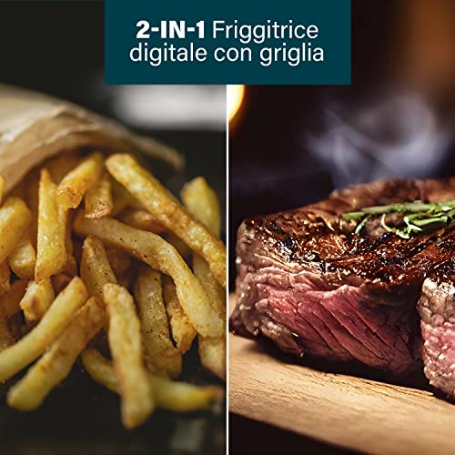 Trova anche tutti i vantaggi di un Airfryer: programmi pre-registrati per la preparazione di patatine fritte e piatti vari e sani con sapori e consistenza autentici, senza aggiunta di grassi..