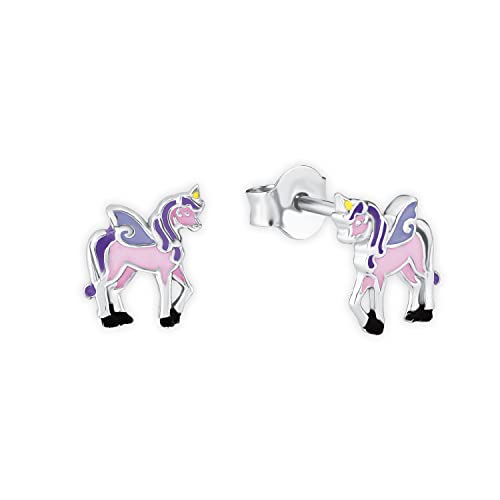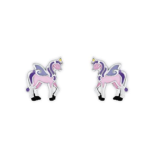 Princess Lillifee Orecchini a bottone Orecchini per bambine in argento sterling 925, 0,9 cm, viola, unicorno, in confezione regalo di gioielli, 2013151