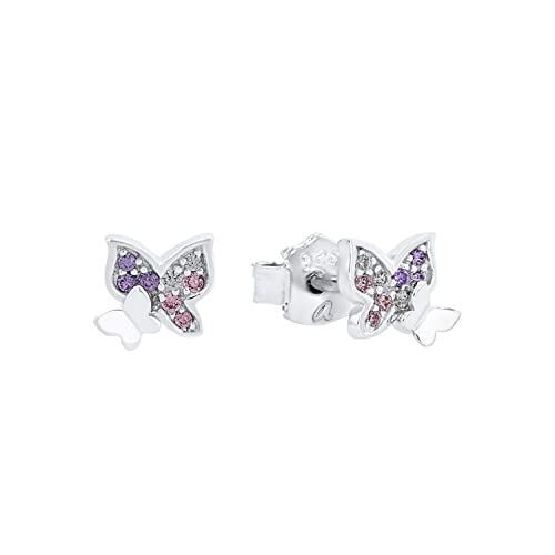 Princess Lillifee Orecchini a bottone Orecchini per bambini in argento sterling 925, con sintetizzatore di zirconi cubici, 0,6 cm, viola, farfalla, in confezione regalo per gioielli, 2021063