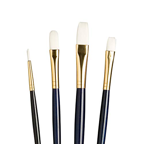 Princeton Art & Brush Real Value Synthetic Brush Set, Round Size 1, Bright Size 4, Filbert Size 4, Flat Size 6, White Taklon