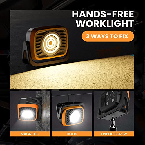PRINCEWAY Lampada da Lavoro a LED, Ricaricabile 2000 Lumen COB Super Luminoso Faro LED Ricaricabile Portatile, 8000 mAh a Batteria, Lampada da Lavoro per L'illuminazione del Sito Meccanico