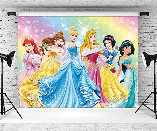 Principessa Sfondo di Compleanno Fiaba Principessa Tema Festa di Compleanno Decorazione Sfondo Ragazza Torta di Compleanno Tavolo Fotografia Sfondo Baby Shower Decorazione Forniture 2,1x1,5 m