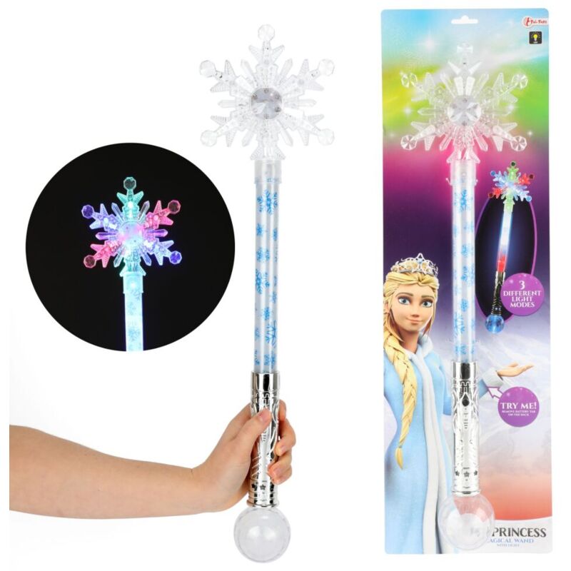 Fiocco di neve con bacchetta magica da principessa con effetti di luce