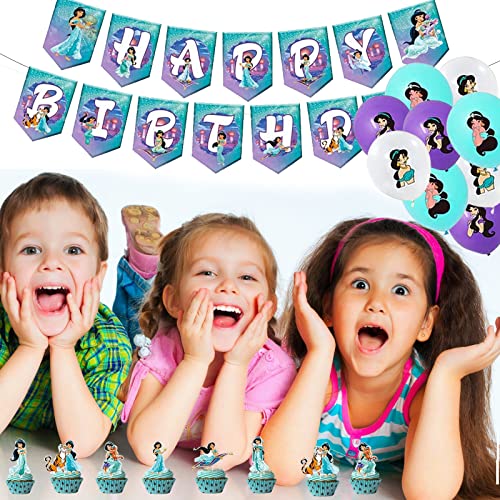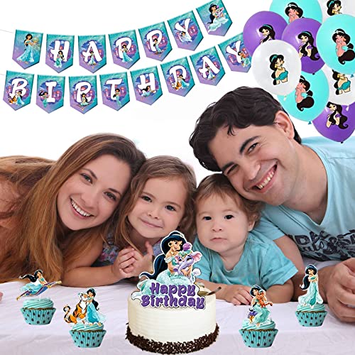 44 Pcs Principesse Theme Party,Principesse Jasmine Palloncino,Principessa Jasmine Decorazioni,Decorazioni di Compleanno di Principessa,Disney Principesse Compleanno Decorazioni per Feste.